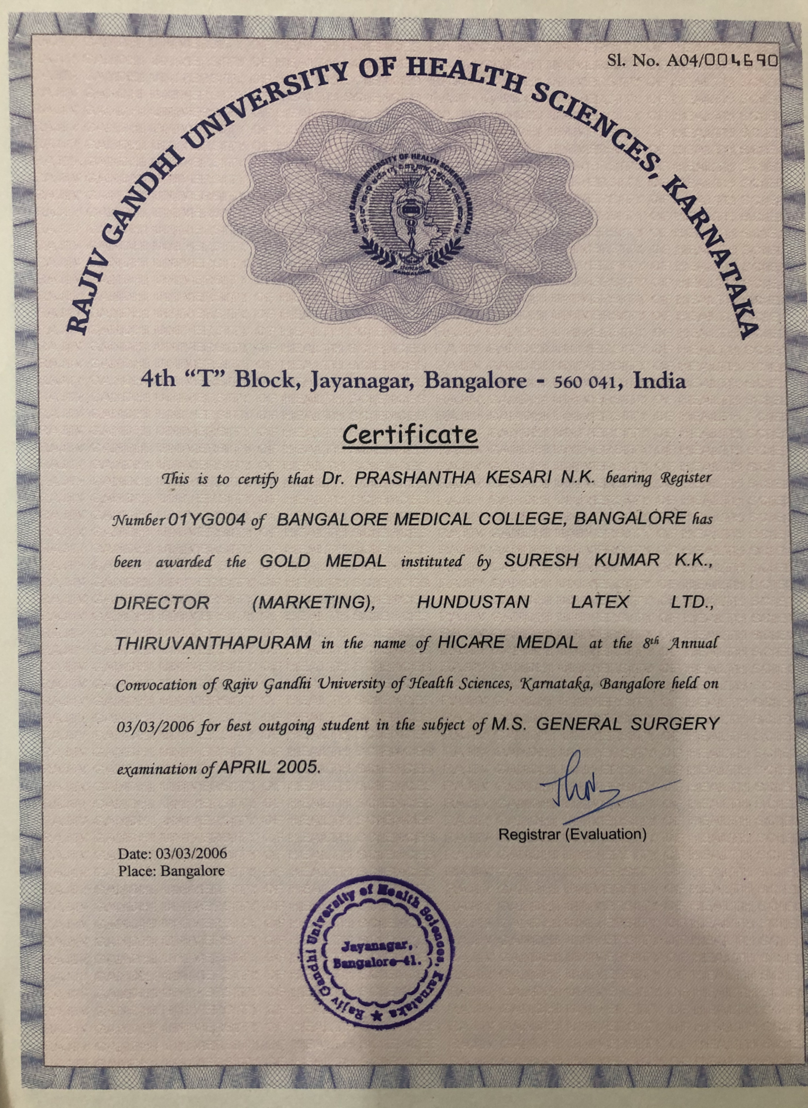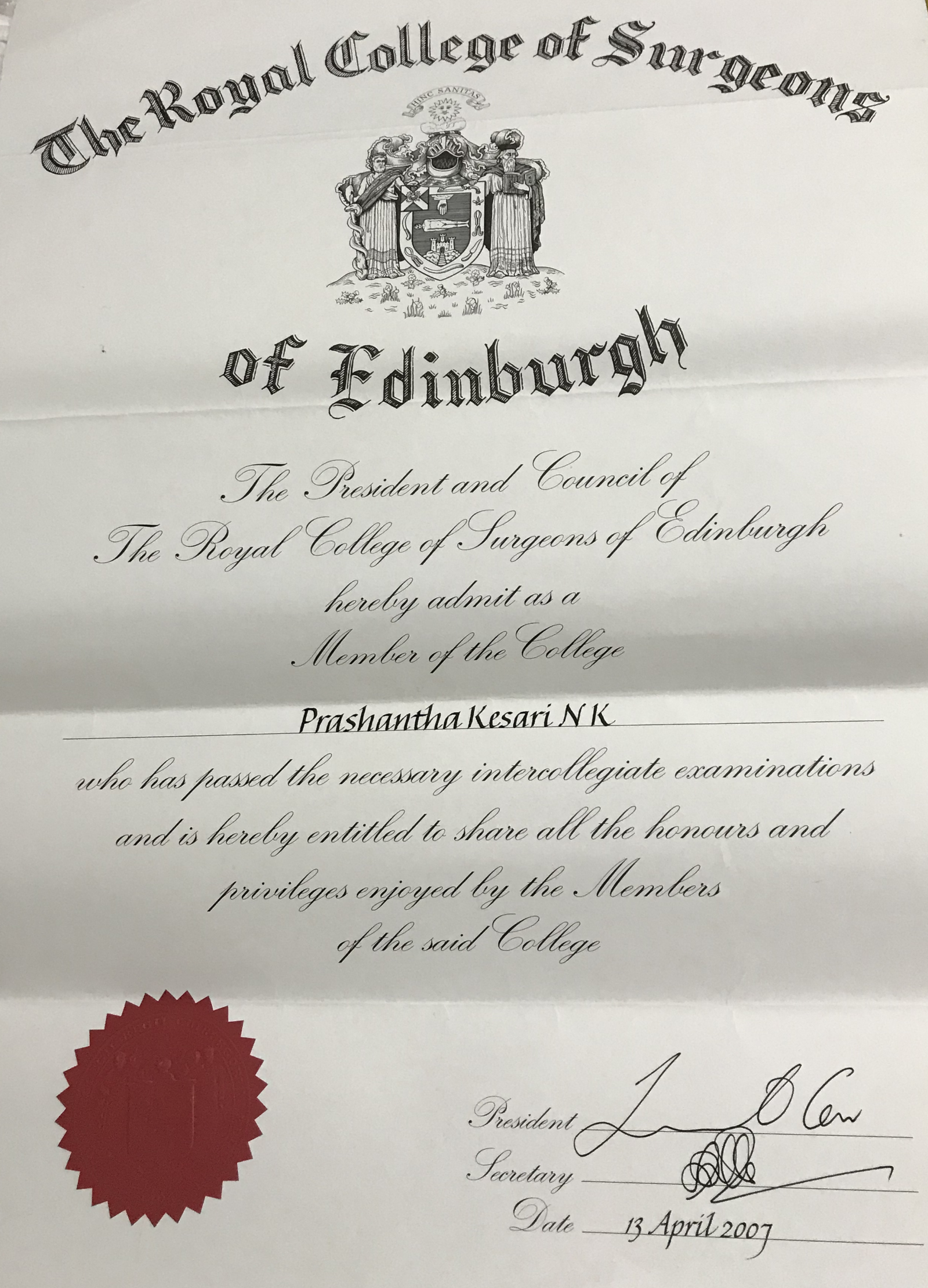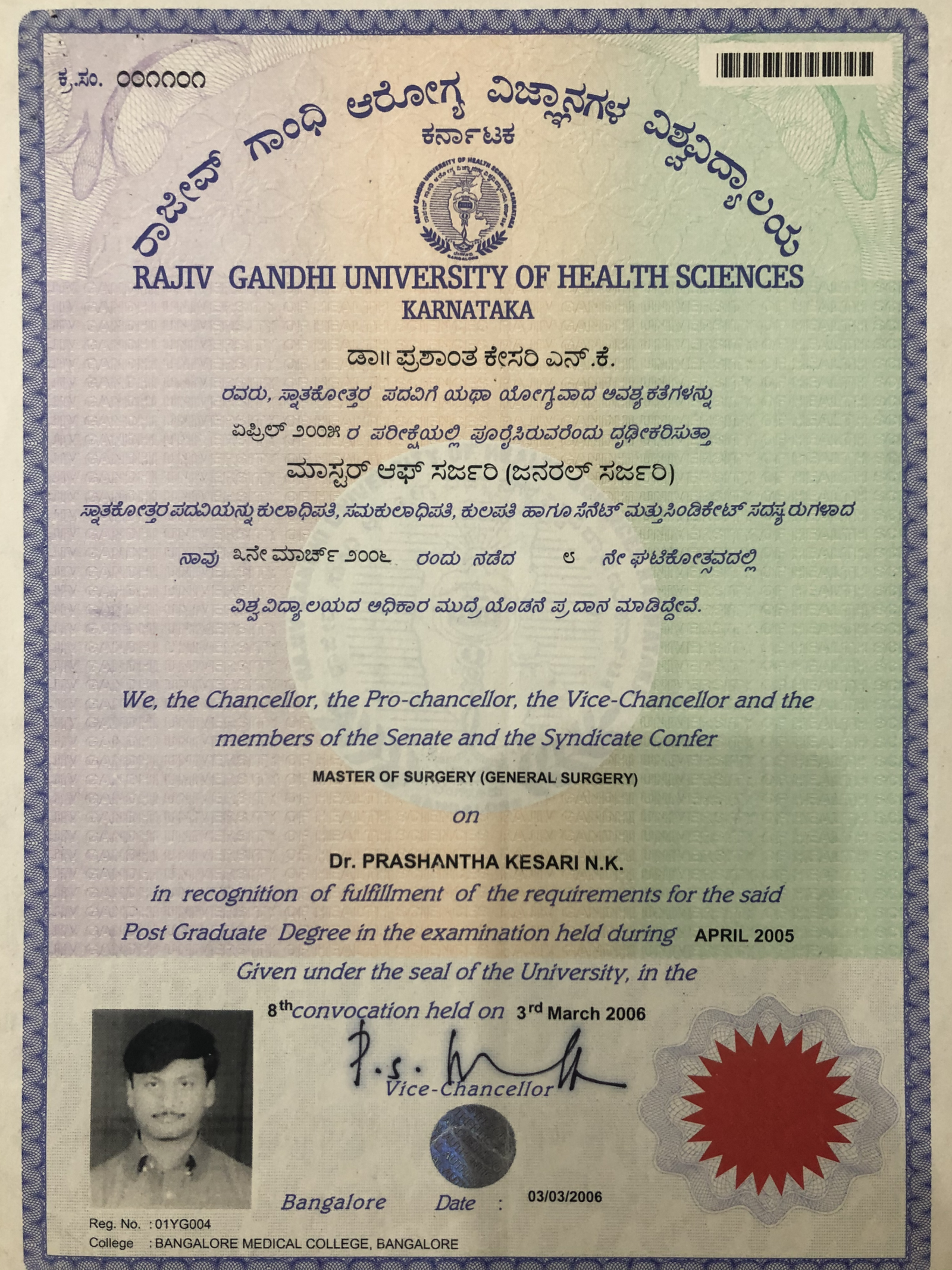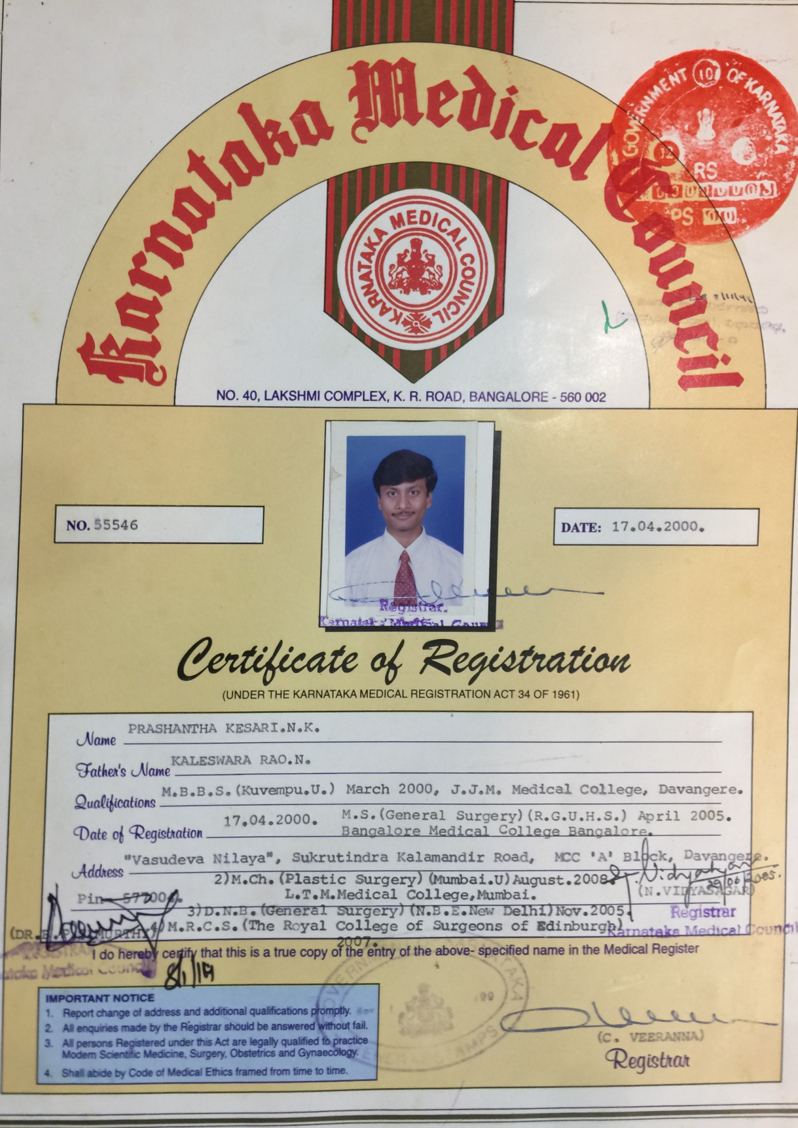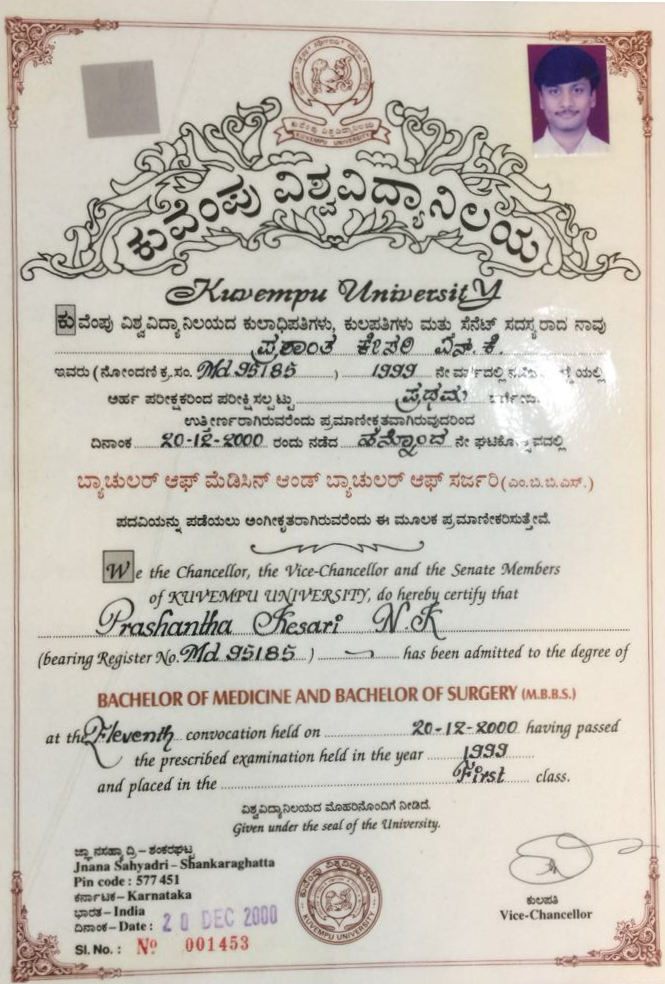 Dr. Prashantha Kesari has gained quality surgical experience by working with the best known surgeons for over nine years. He is meritorious throughout and was appreciated in every stage. He has won gold medals and a number of awards.